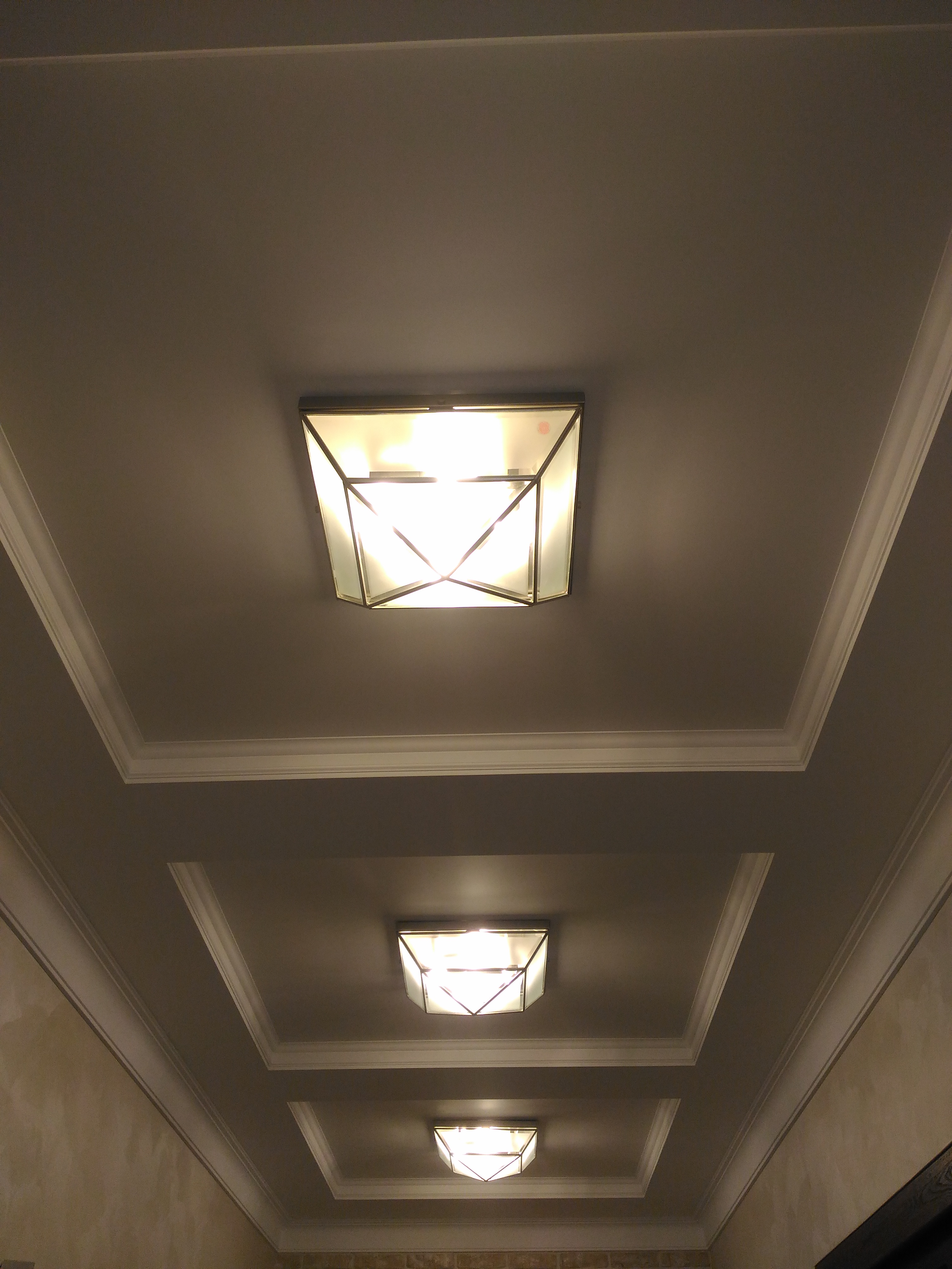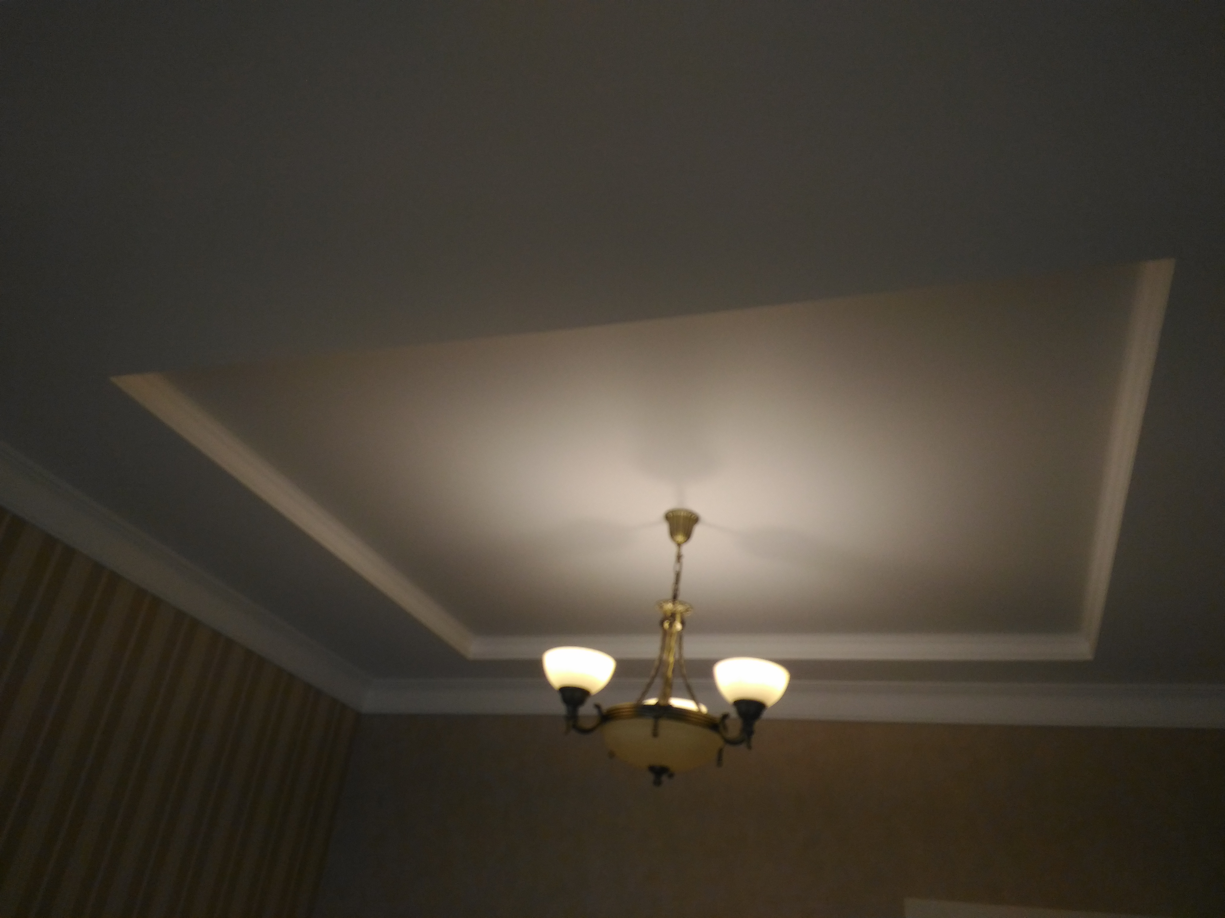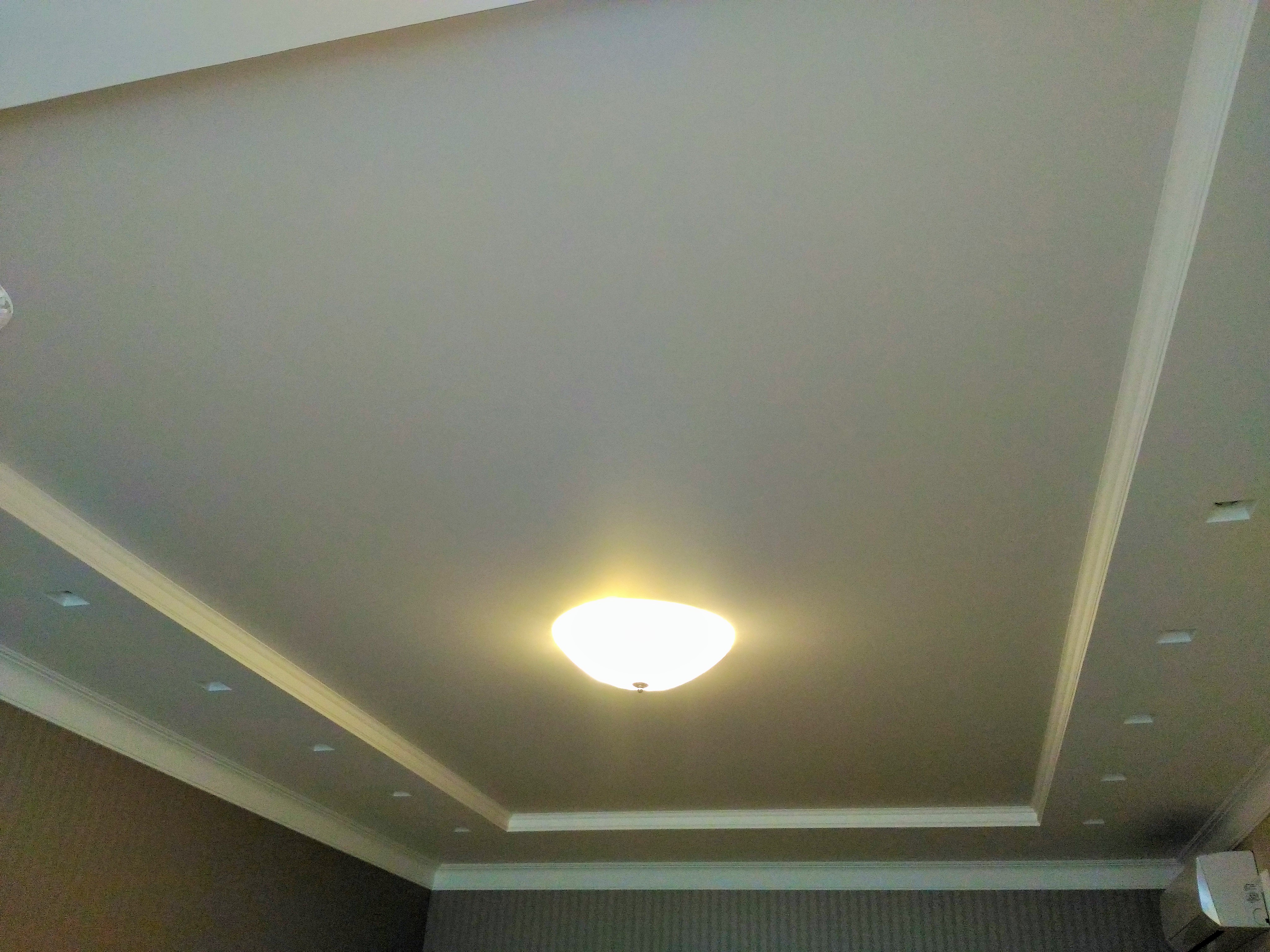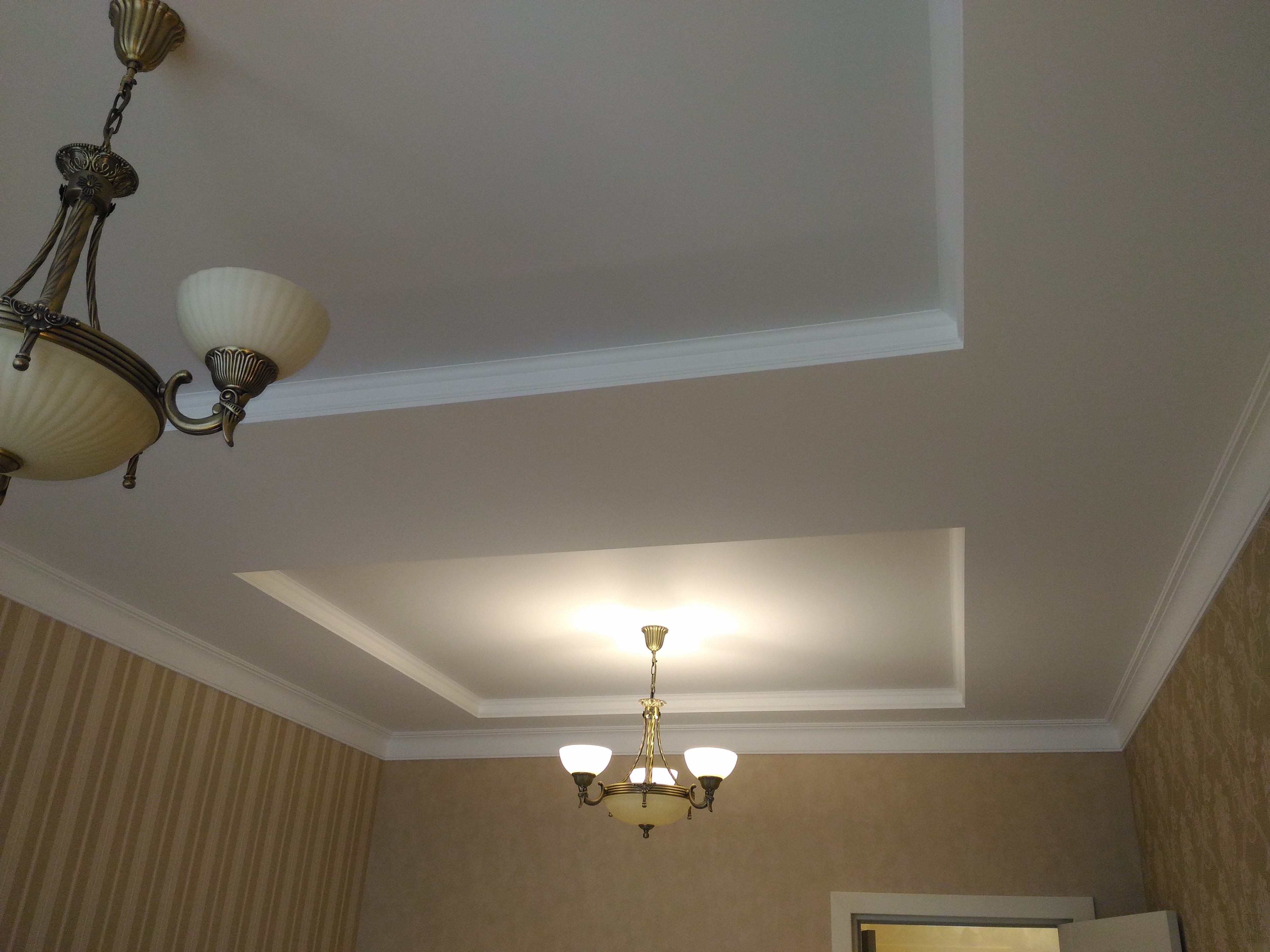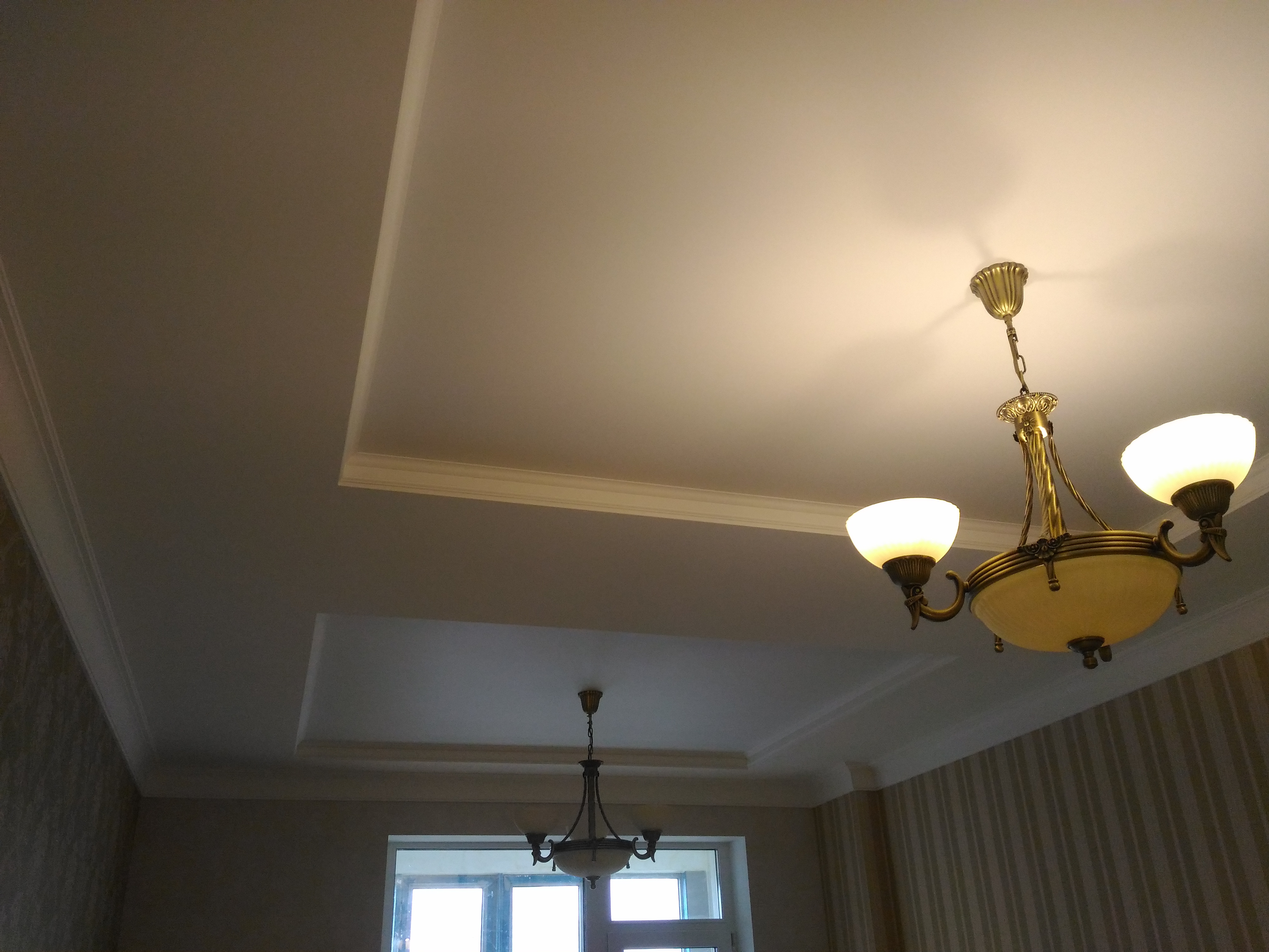 Декоративные багеты по периметру установлены после натяжки потолка отделочниками, поэтому в смету по установке тканевых потолков они не входят.