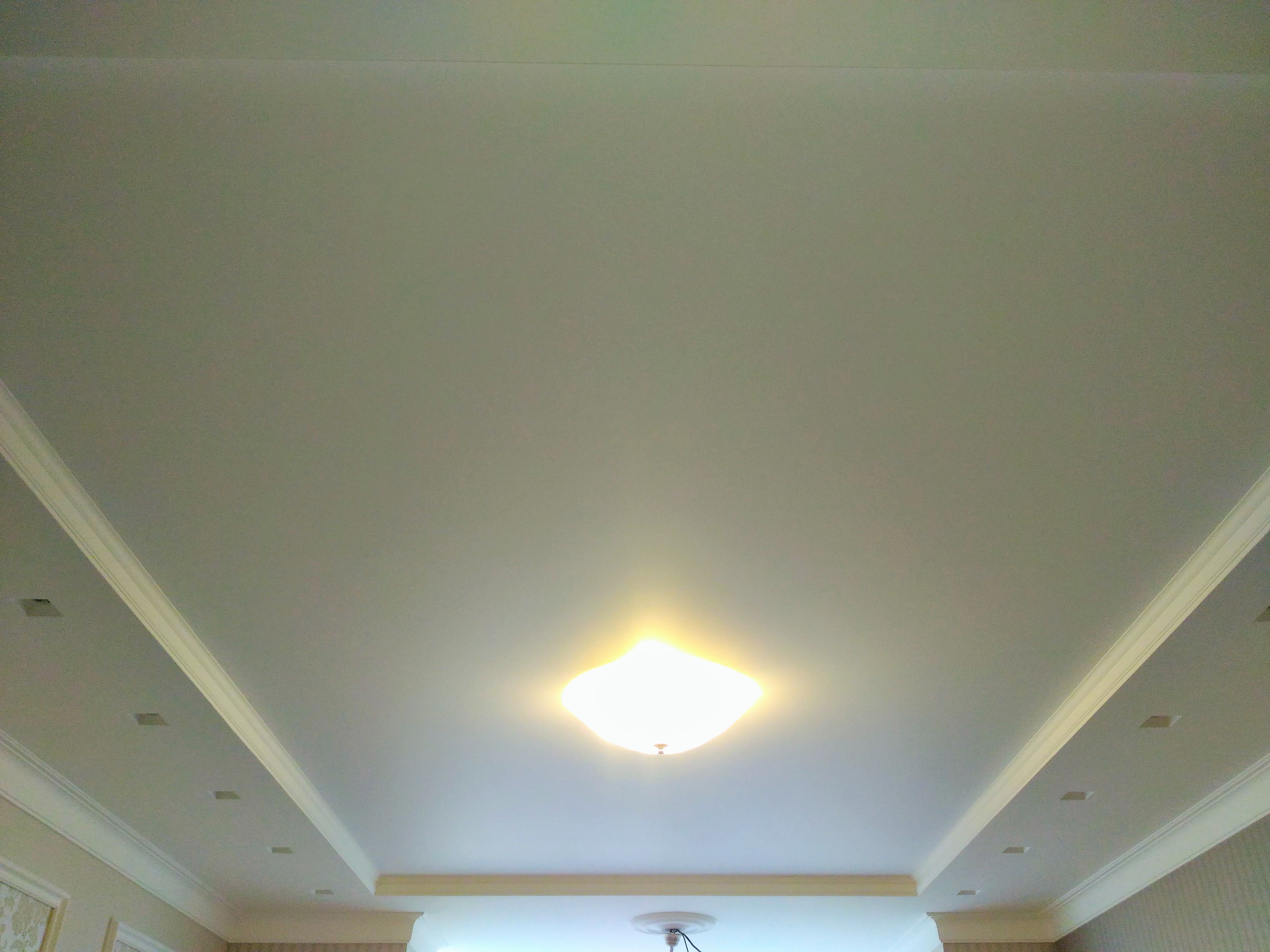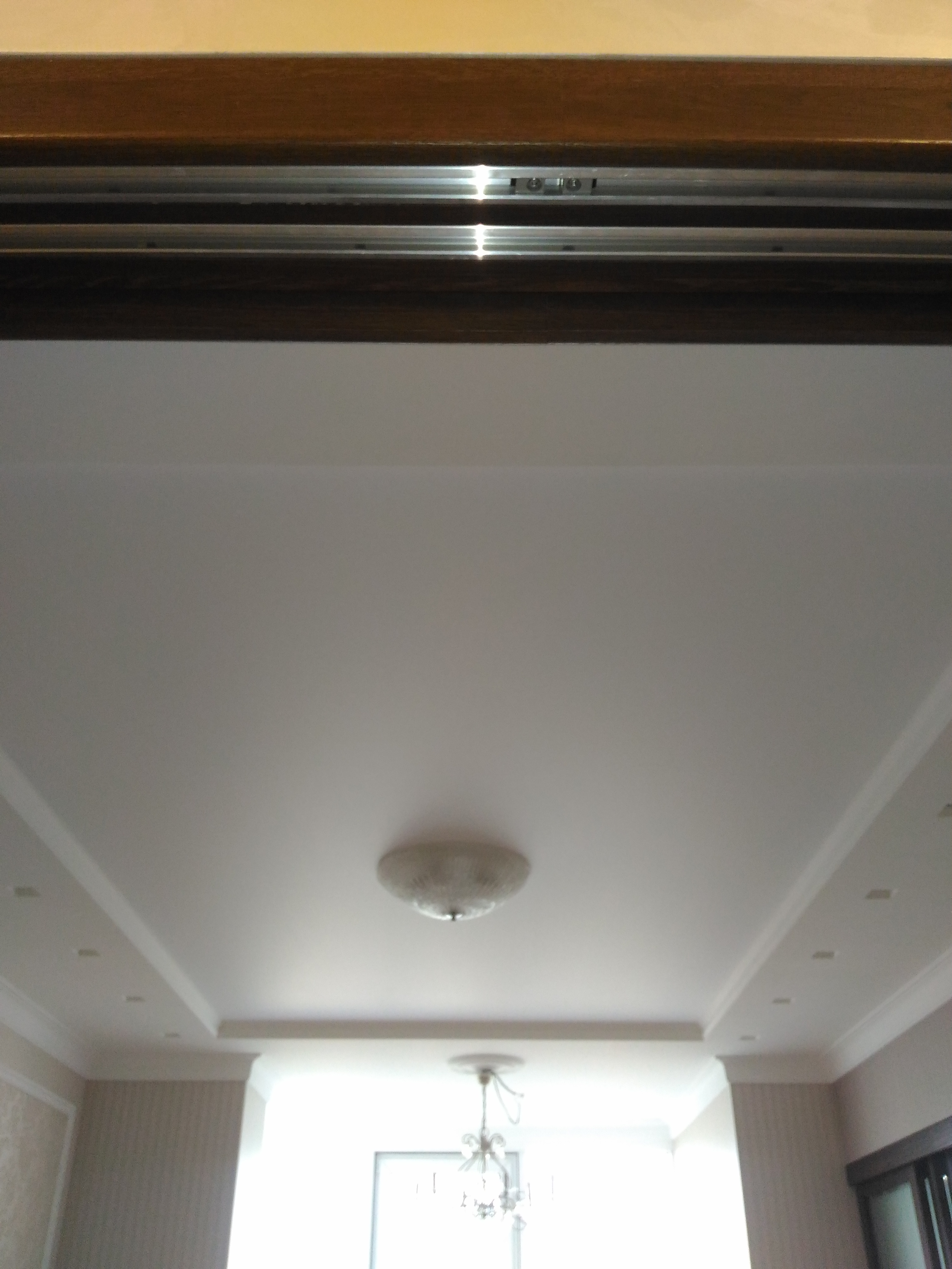 В этом проекте можно визуально сравнить качество материалов Cerutti Neve и потолка из гипсокартона. Именно по желанию заказчика второй (нижний) уровень был сделан из гипсокартона. Срок изготовления потолка из гипсокартонных листов составил несколько недель, в то время как ткань была установлена за 2 дня.