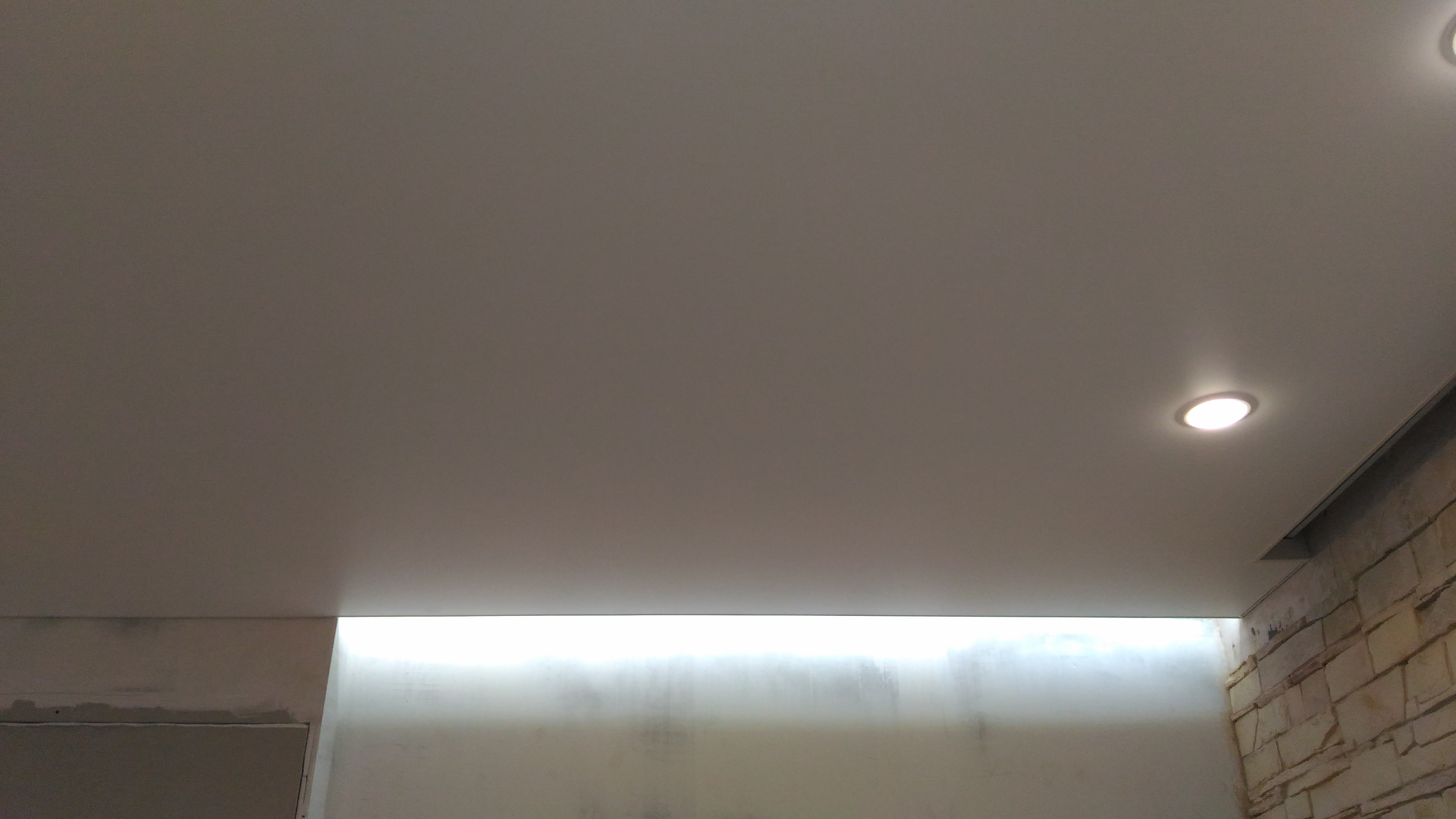 Вставка установлена только в тех местах, где она нужна - это вокруг ниш для гардин, в остальных местах монтажный шов закрывается декоративным кирпичом и багетами.