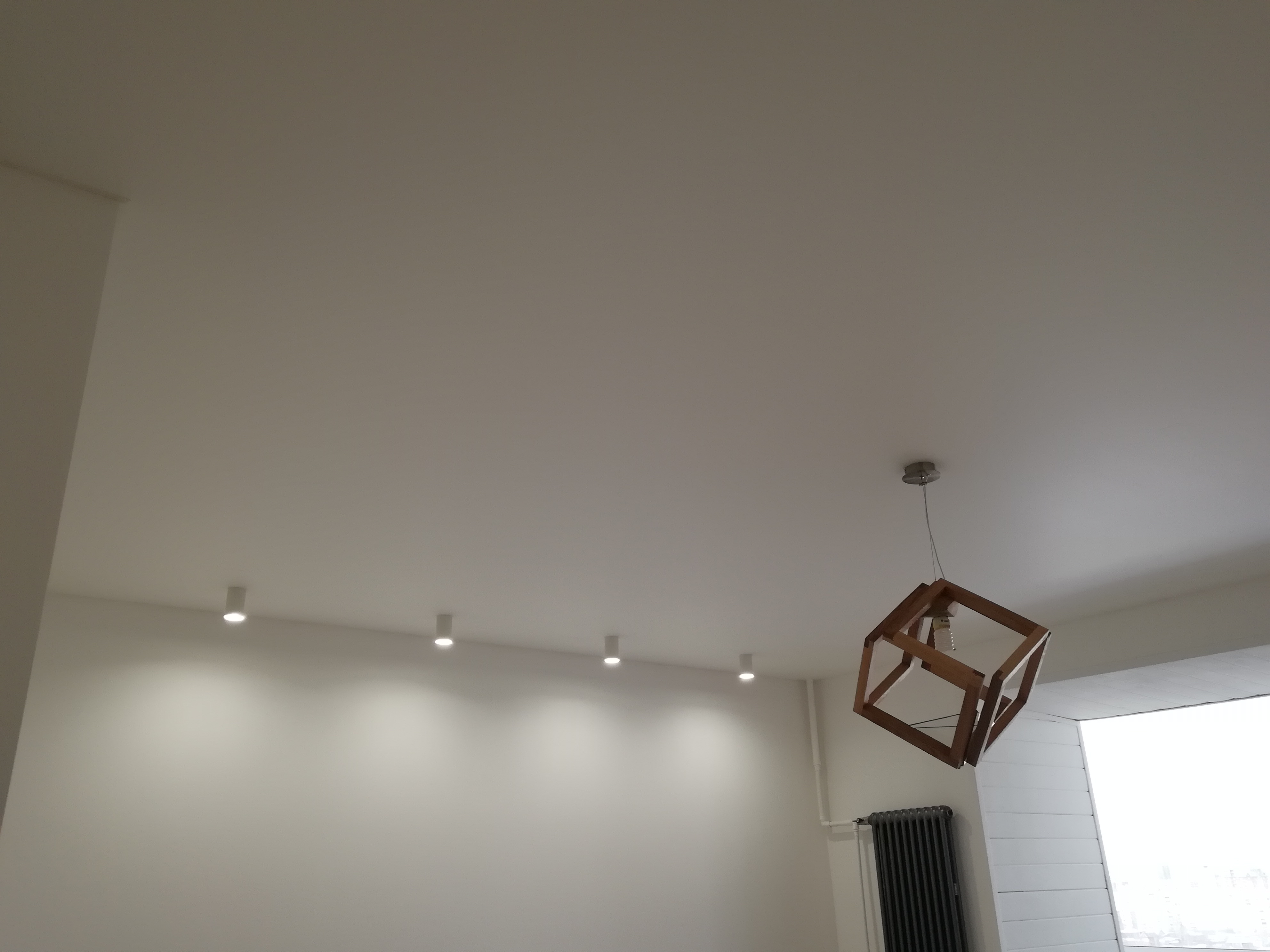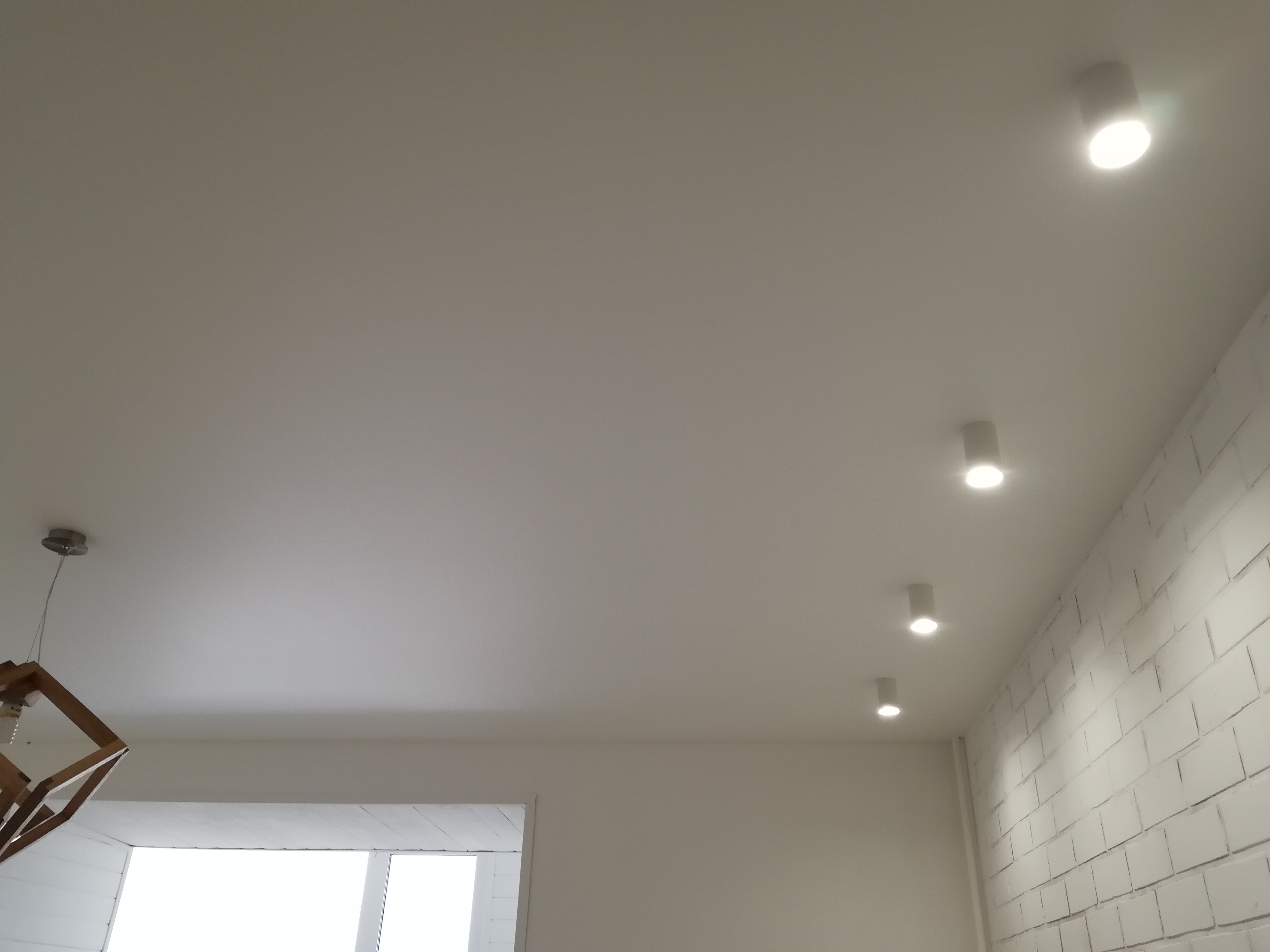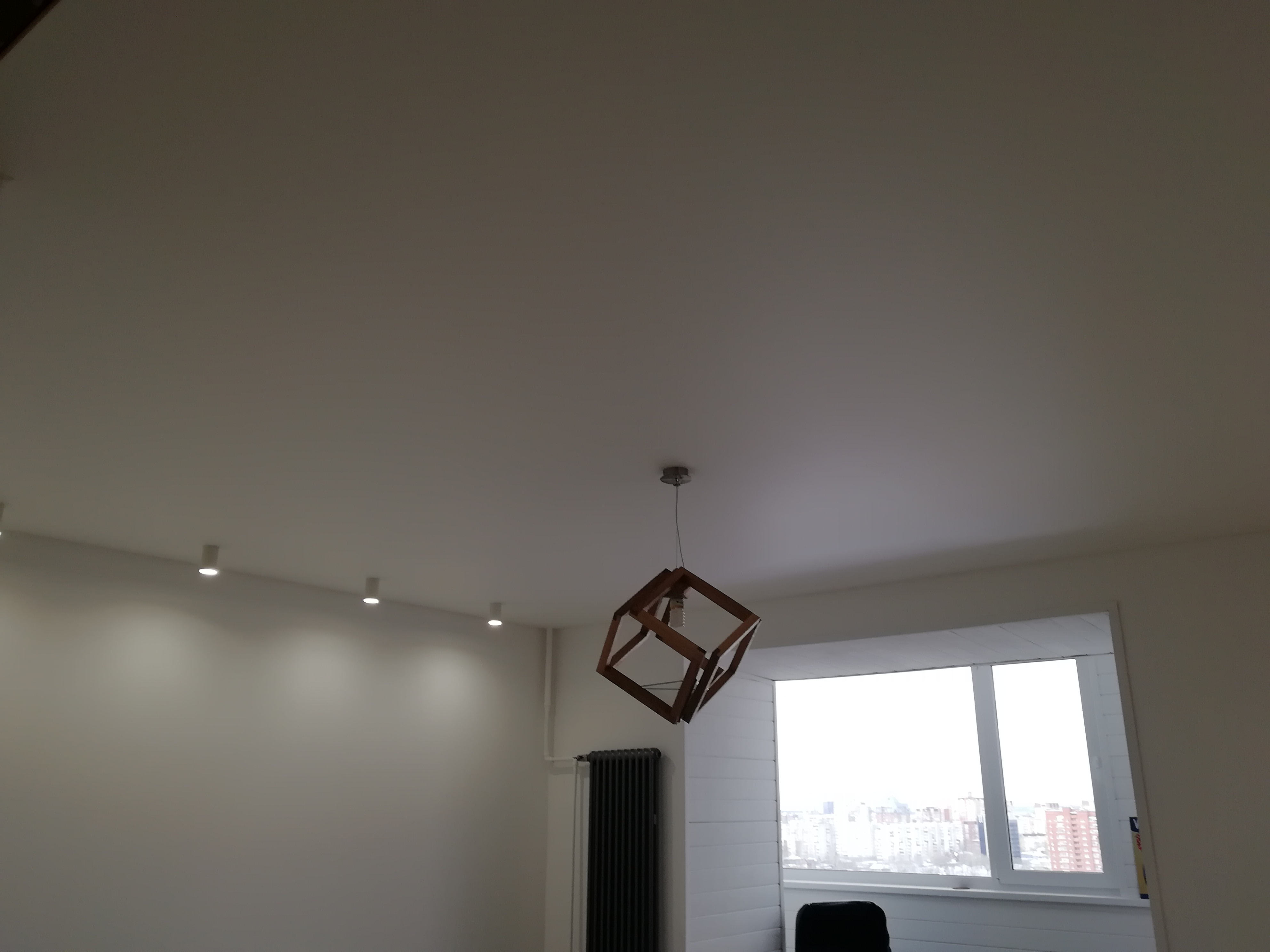 Стандартный потолок со светильниками и люстрой.