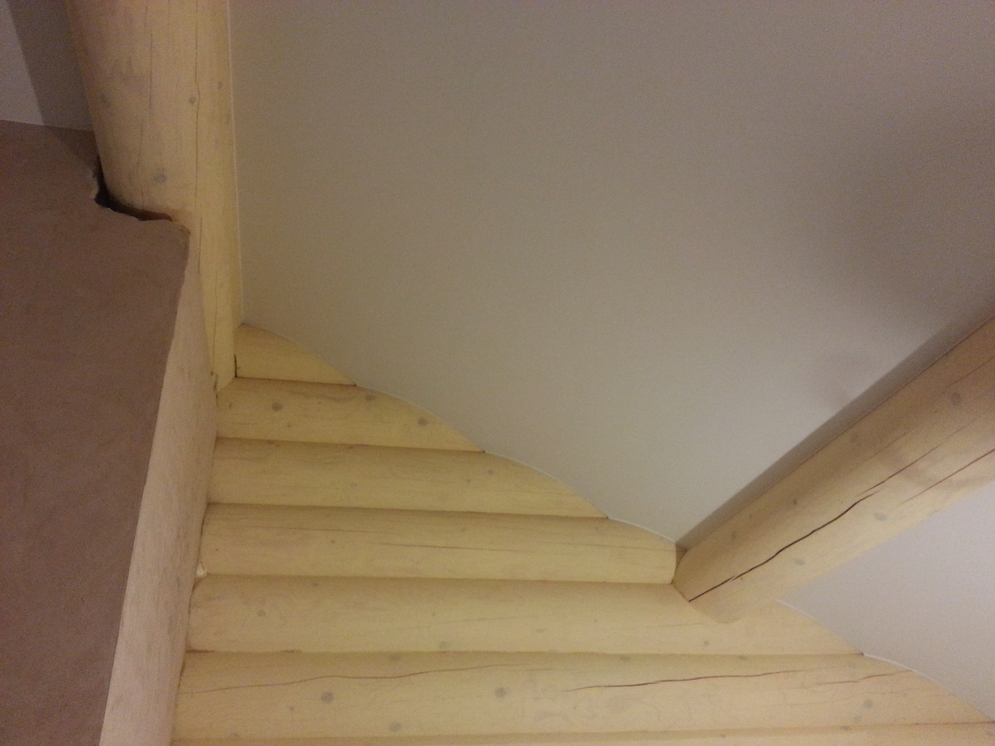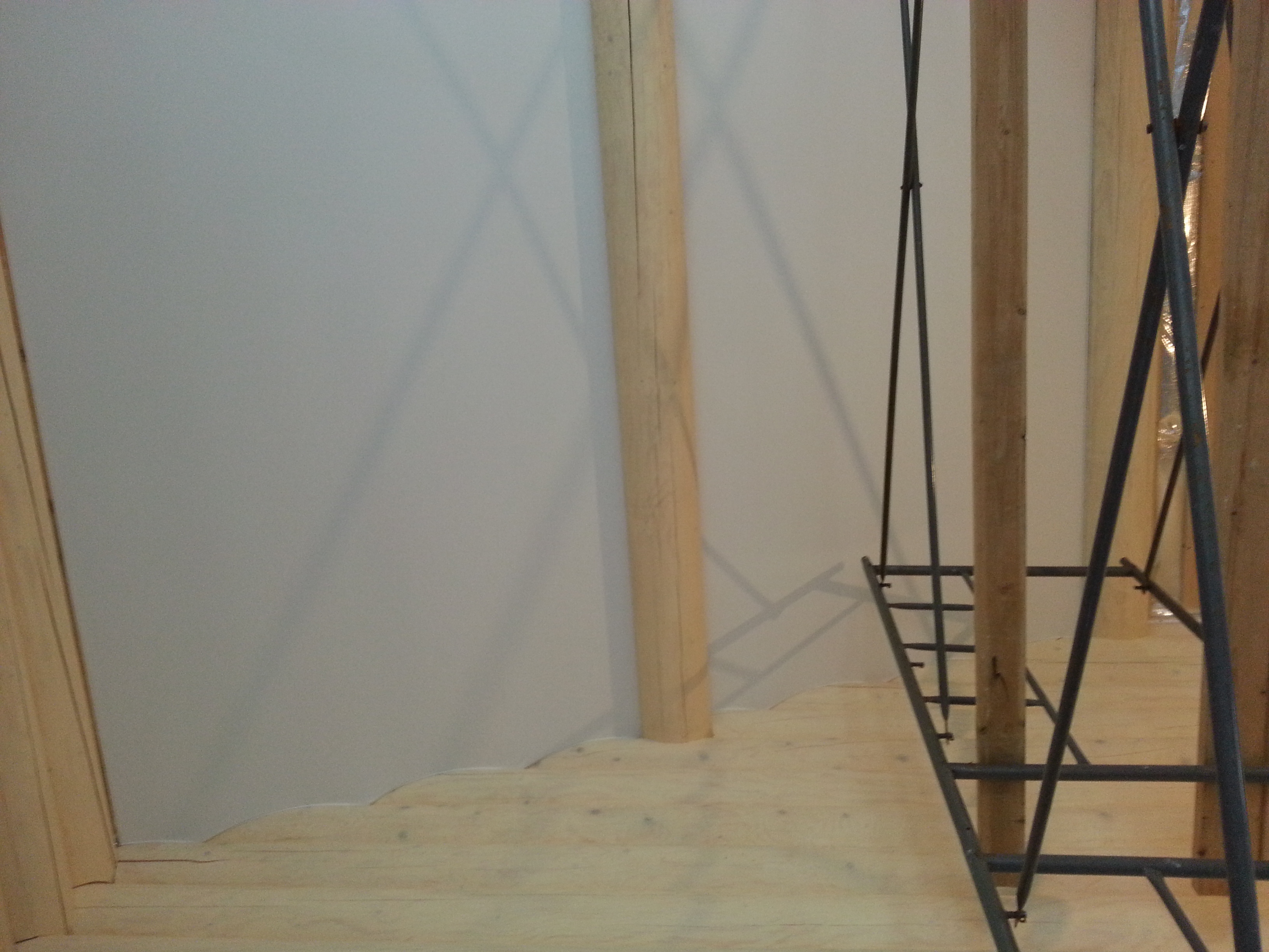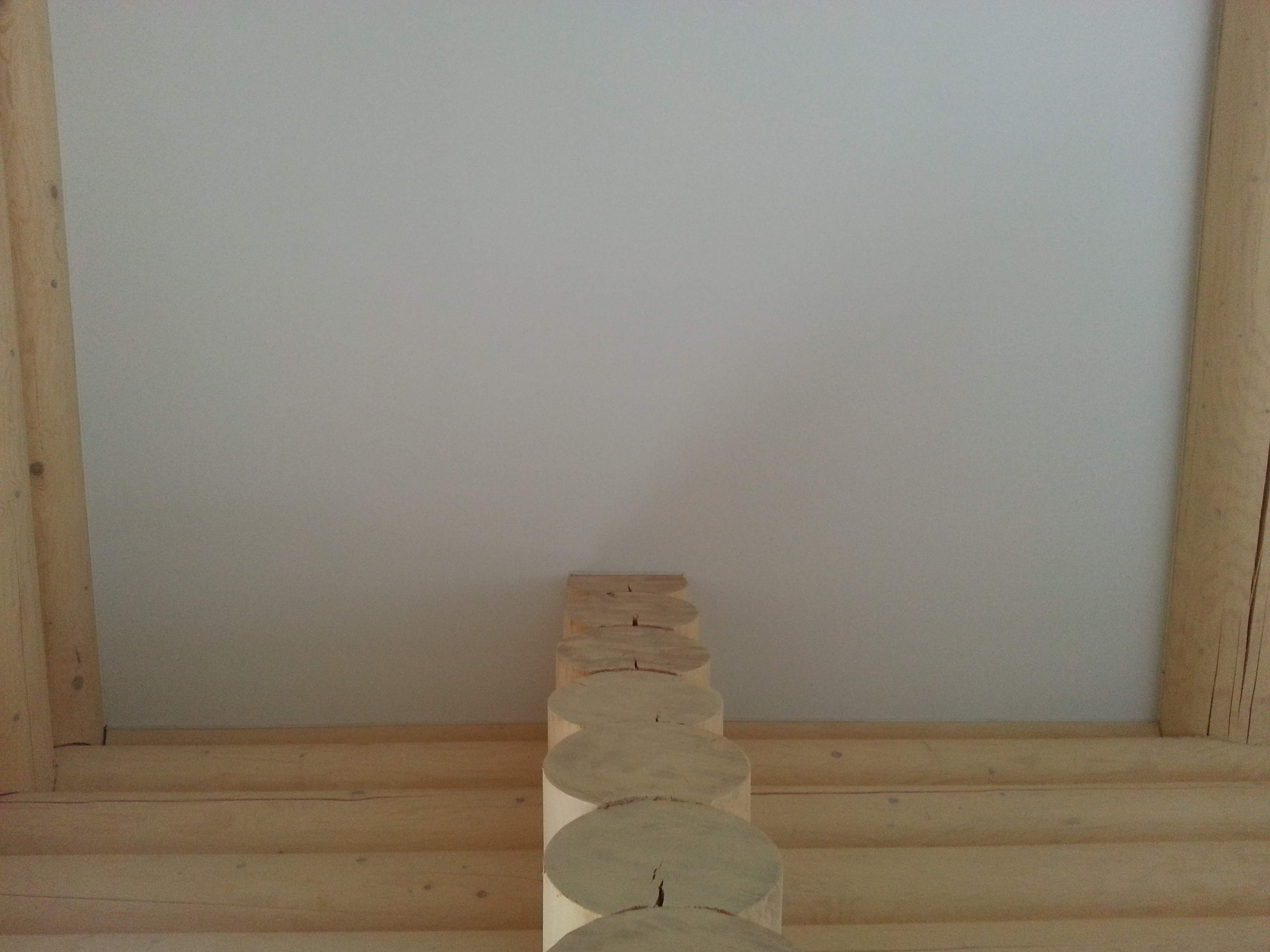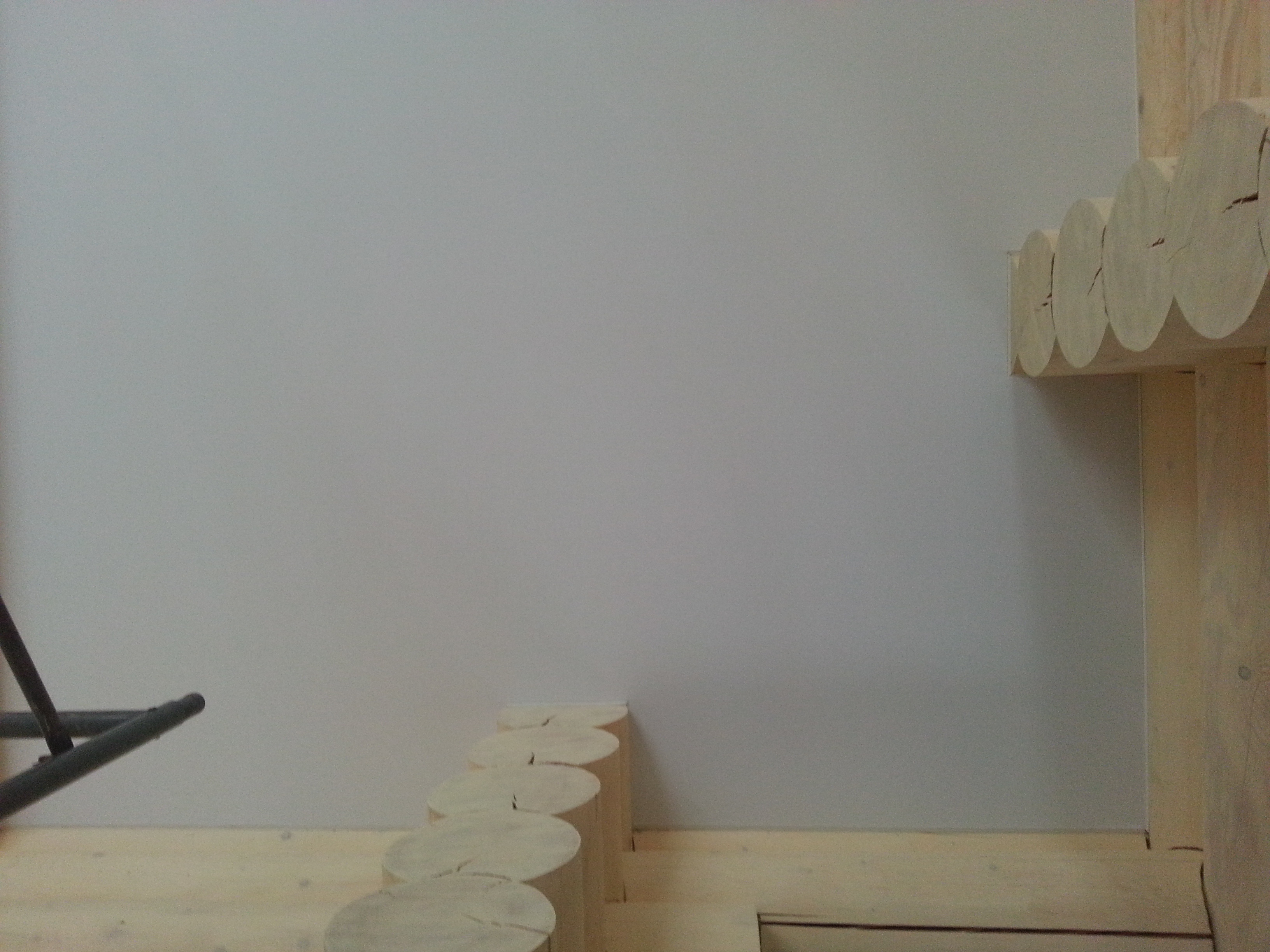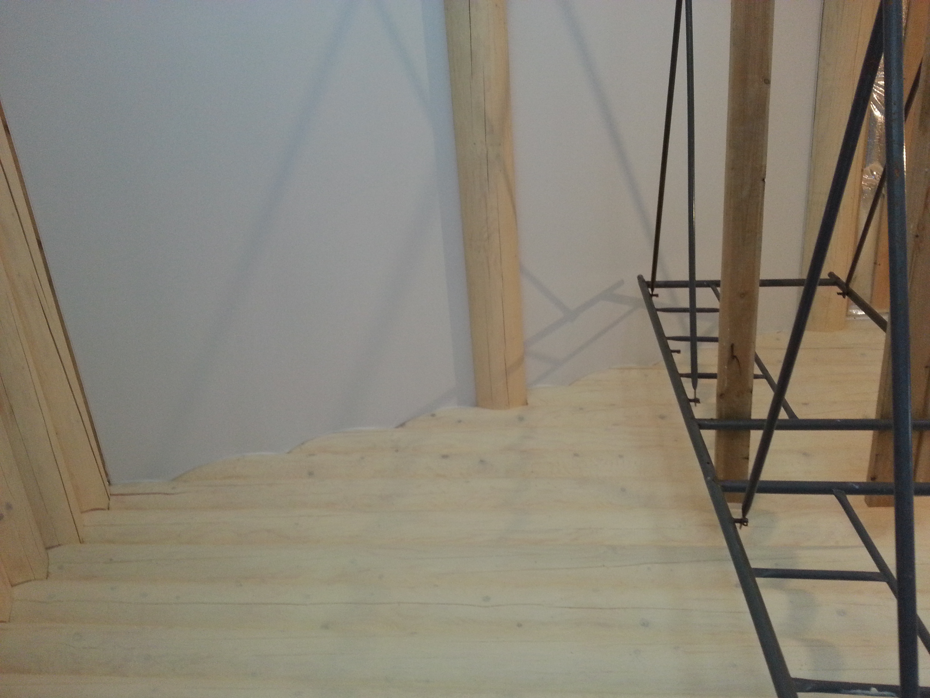 Сложный проект. Материал Attica Pro тоньше, чем стандартное полотно Neve, поэтому его можно установить в профиль "прищепку", который не требует установки декоративной вставки. Главным требованием заказчика было обойти бревна по наклонной плоскости плотно, без зазоров.