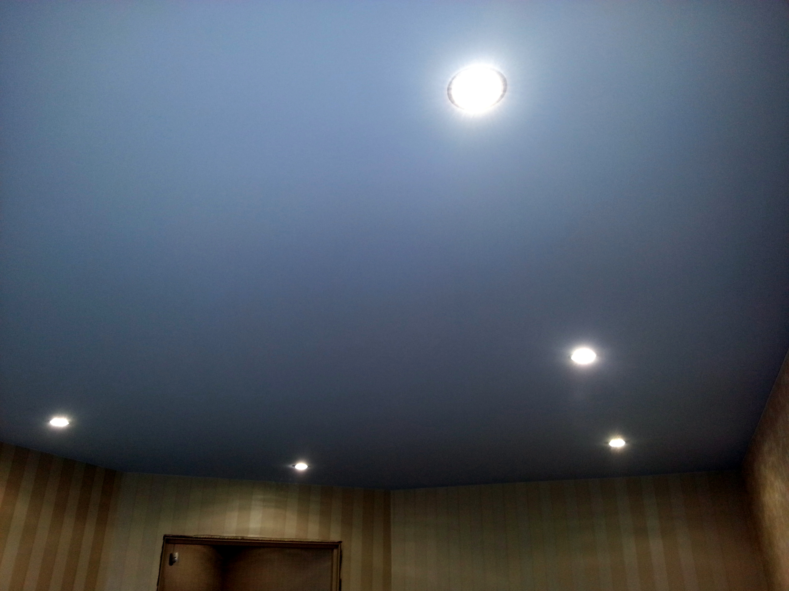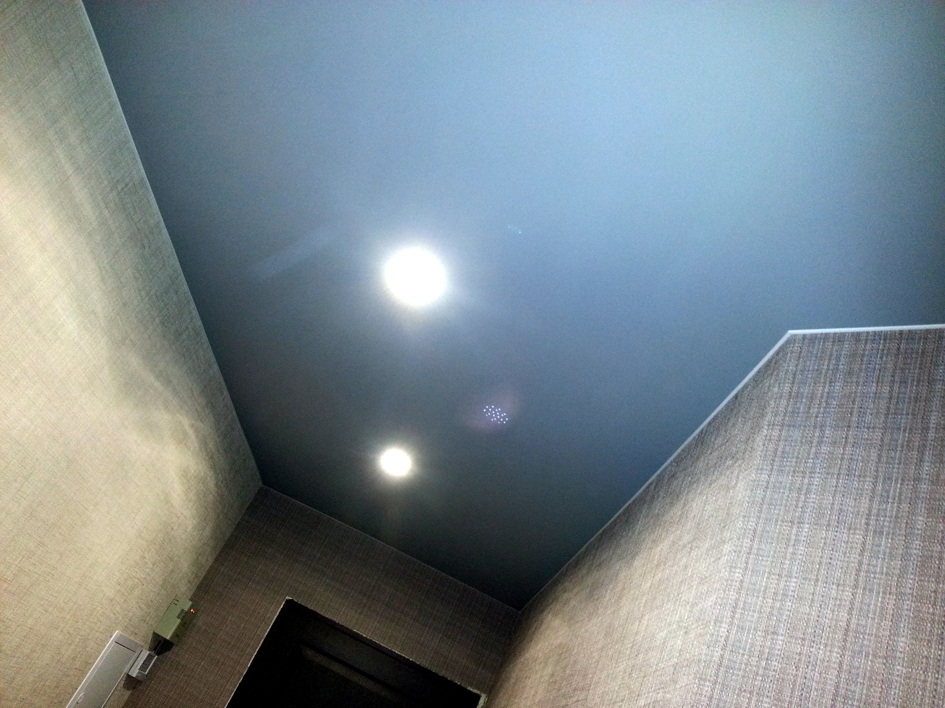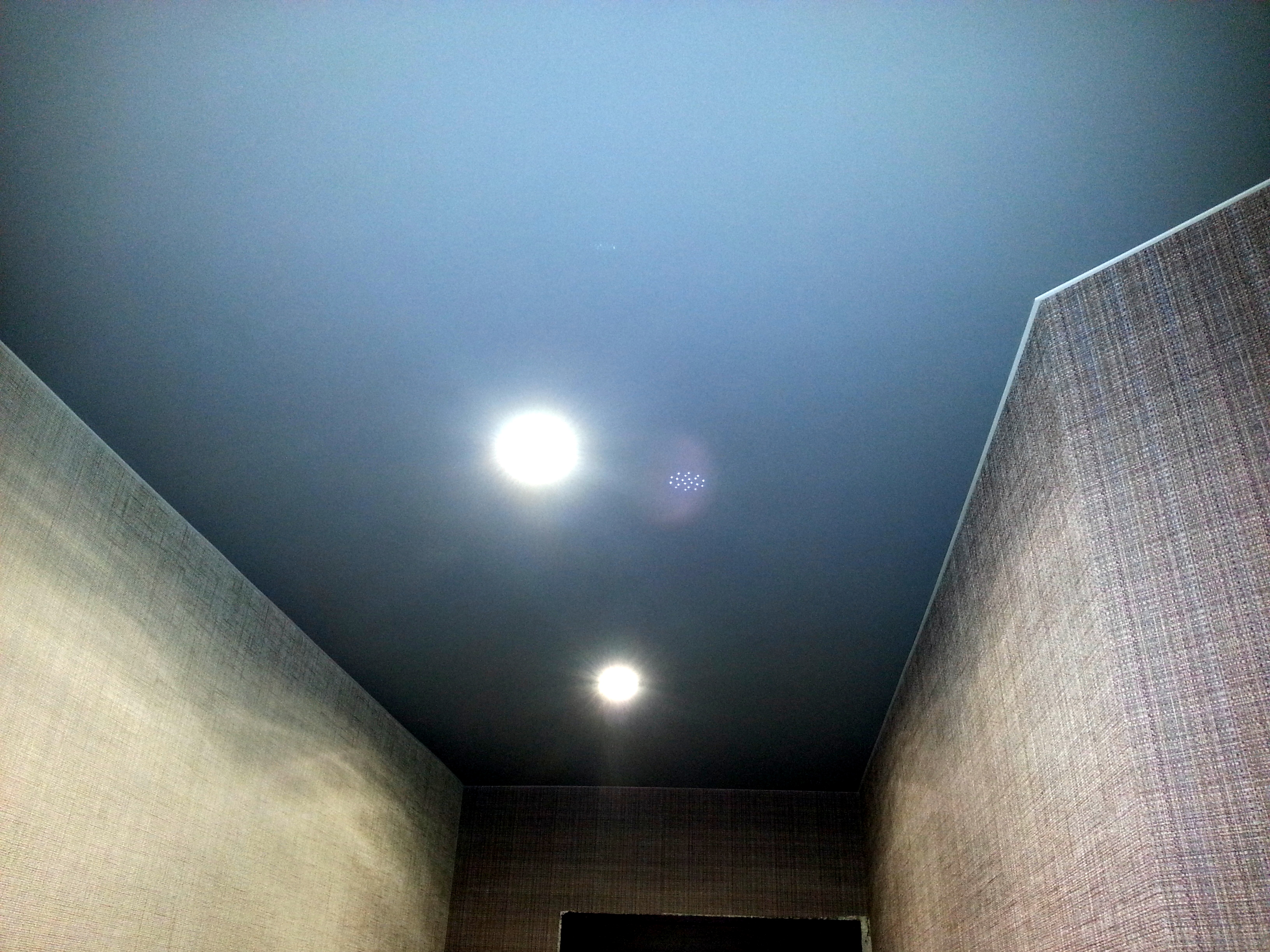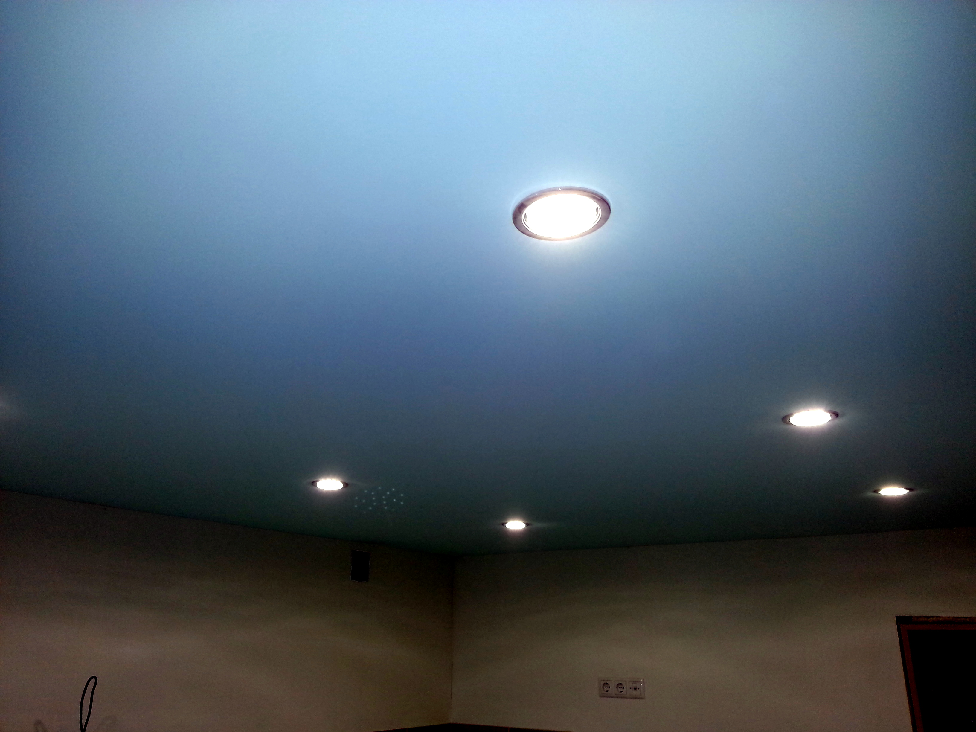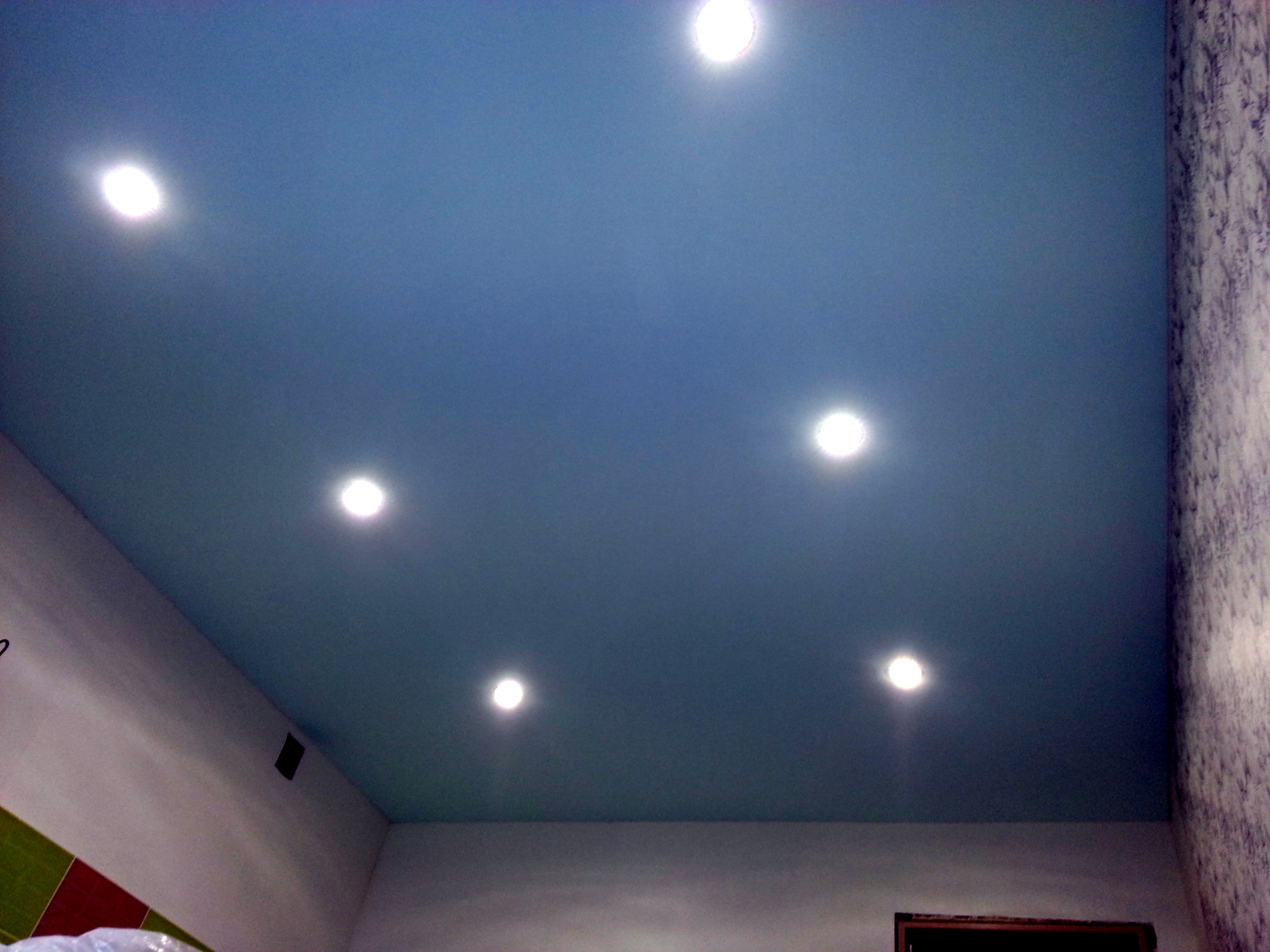 Цветные тканевые полотна сохраняют все свои свойства, как и белые. Такие потолки являются негорючими и безопасными для использования в жилых помещениях.